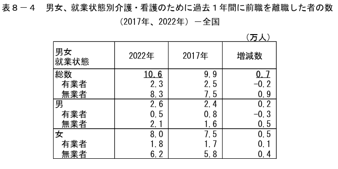 令和4年就業構造基本調査によれば、介護や看護を理由に離職した人は 約10.6万人 にのぼります。その多くが働き盛り世代に集中しており、経験豊富な人材の流出は企業にとって大きな損失です。介護と仕事を両立できる仕組みづくりは待ったなしの課題です。